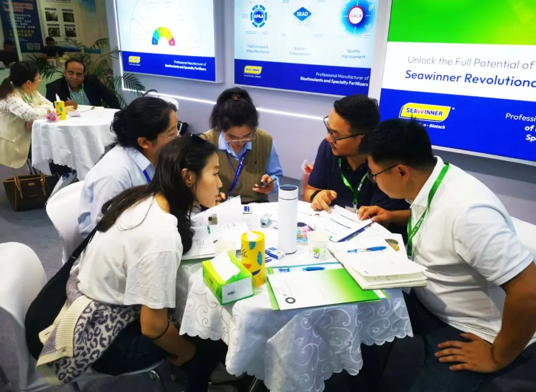 国际出口业务展出的系列产品有海藻提取物系列、鱼蛋白系列、海藻壳寡糖系列、APAA系列、海藻微量元素系列、海藻腐殖酸系列、海藻颗粒肥系列等。公司作为功能特肥及生物刺激素专业制造商,依托中国海洋大学的科技优势,坚持源头创新,建立百余人研发团队,在海藻资源化处置、海洋活性物质提取、海洋活性产物定向修饰、细胞工厂构建及功能因子生物合成等领域申请专利100余项,形成六大核心技术、三大核"芯"体系及具有行业前瞻性的产品,如生物刺激素特肥之"芯"SEAD-30、APAA、GALA等代表性产品。SEAD-30是新一代天然双藻源生物刺激素,采用尊龙凯时生物独创的AEC技术,具有高活性、高含量、高纯度的特点,理化性质优越,具有全水溶、强螯合、高稳定性、复配性强的优势,应用范围广,推荐用于肥料、农药增效及种衣剂添加,也可单独使用。